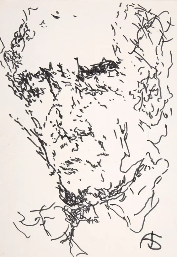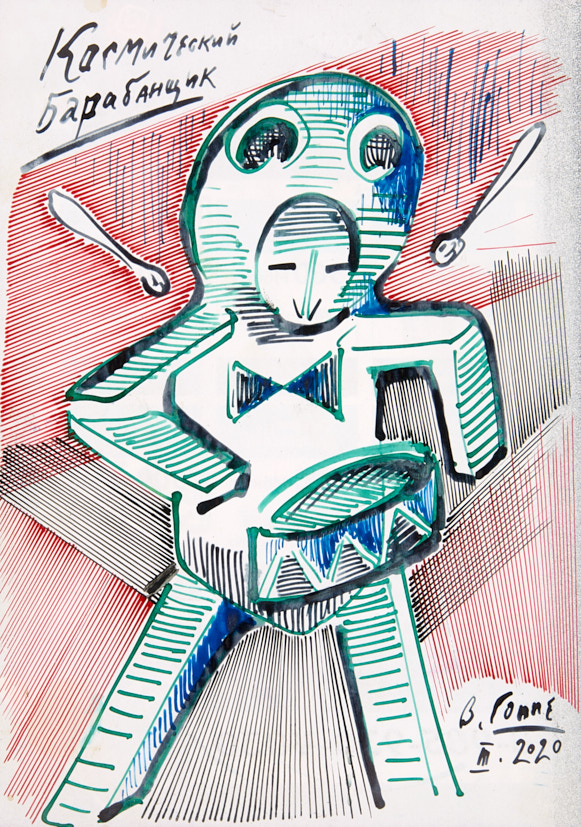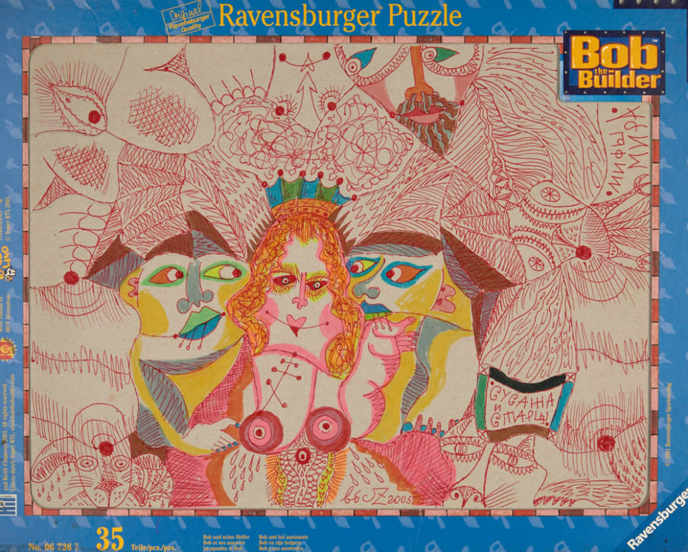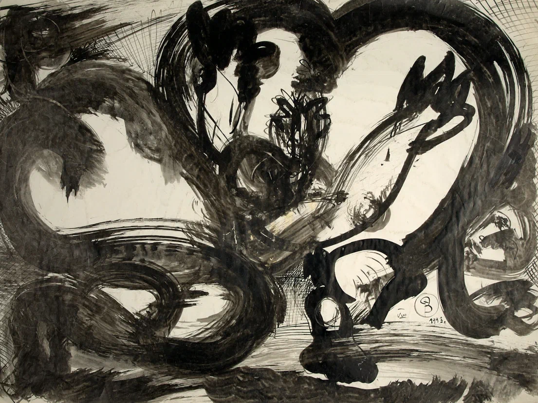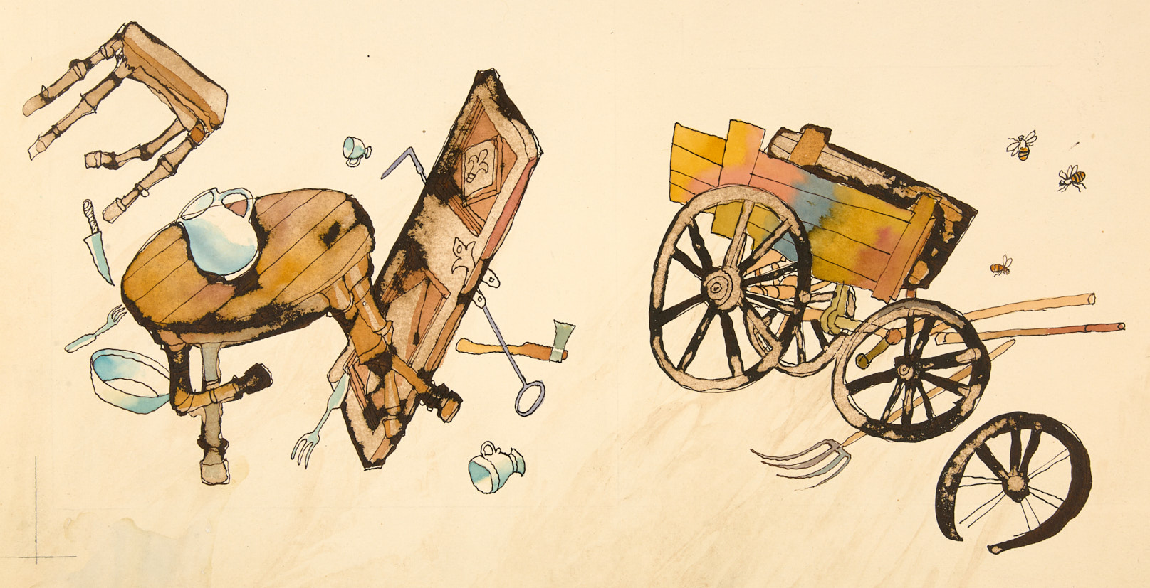 Ковбой и медведь. Оригинал иллюстрации для книги «Неуловимый ковбой. Американские стихи и сказки.» Для издательства «Монолог.» 1995 г. Бумага, тушь, перо, акварель, гуашь, 32×24,5 см.