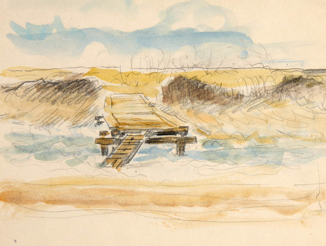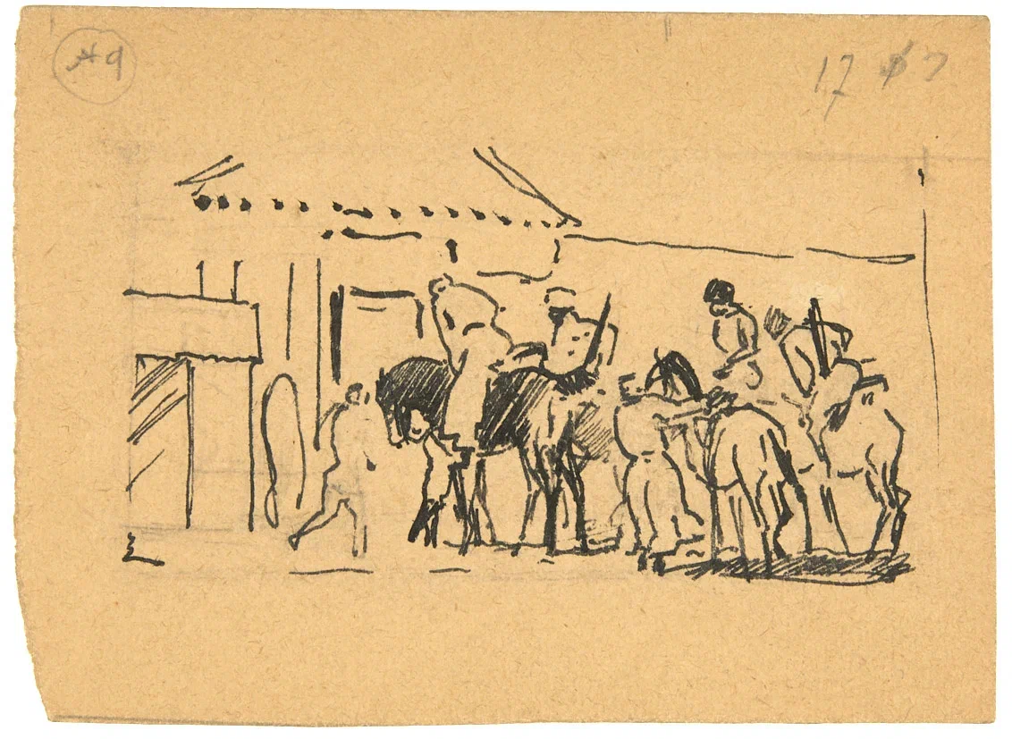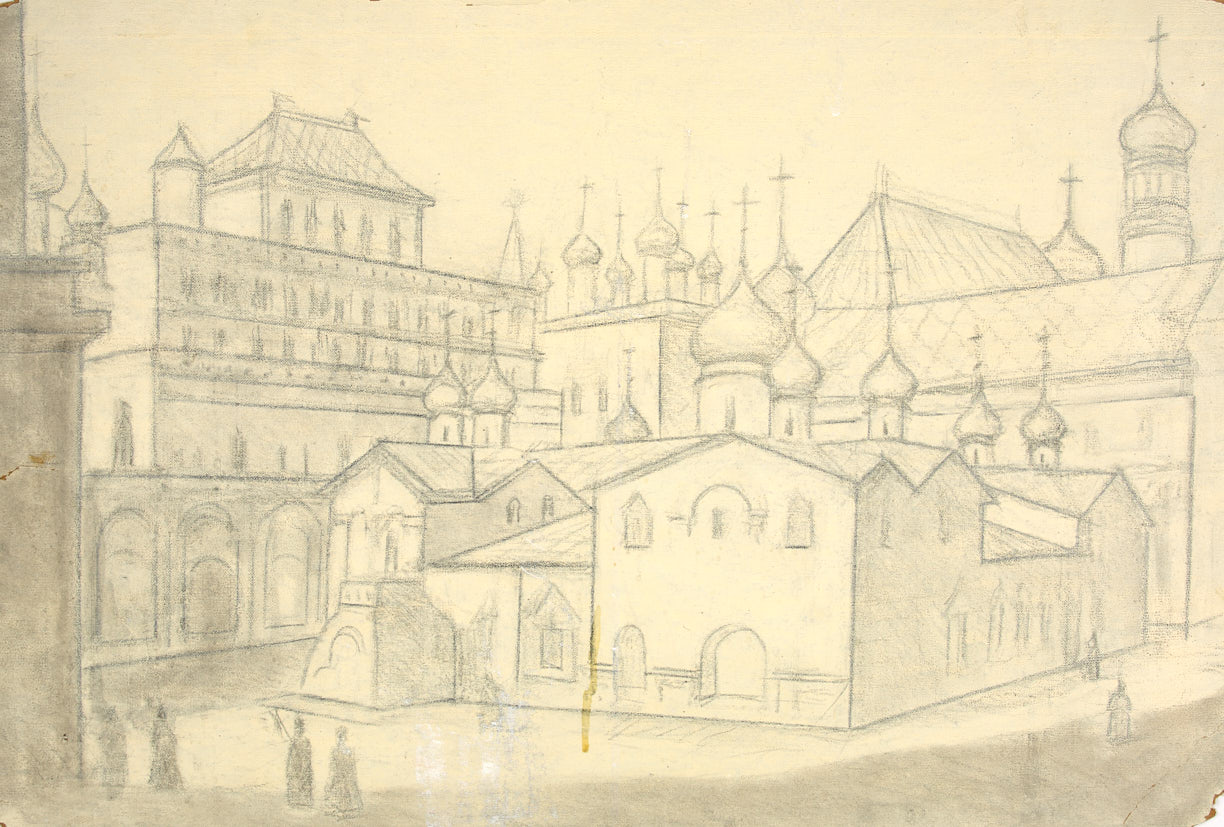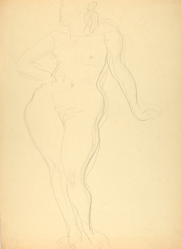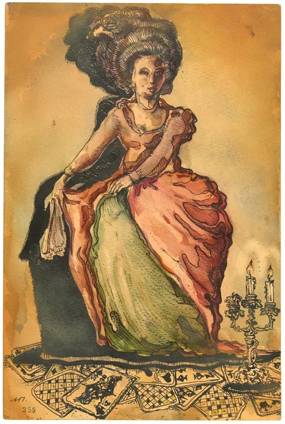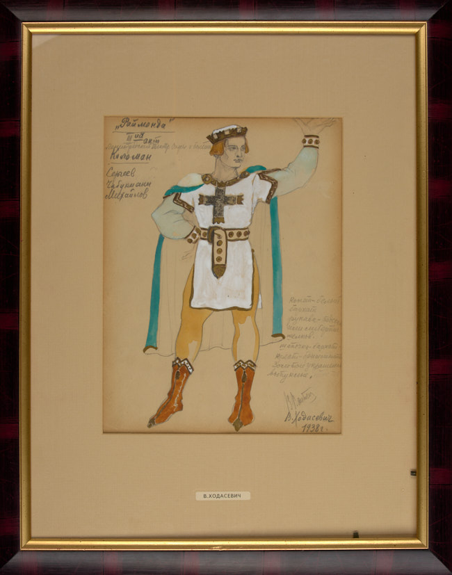 Эскиз костюма Коломана для постановки балета А. К. Глазунова «Раймонда» в Ленинградском государственном Академическом театре оперы и балета им. С.М. Кирова. 1938 г. Бумага, графитный карандаш, акварель, белила, золотая краска, 27,8×21 см (основа).