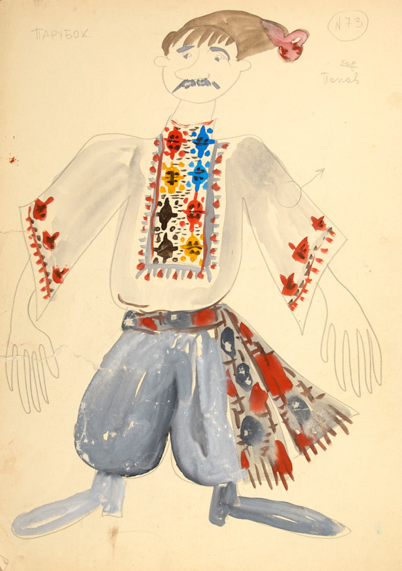 Мурванидзе Теймураз Давидович (р. 1939). Лот из трех эскизов костюмов девушек в национальных украинских одеждах: Параська, хористка, танцовщица гопака для спектакля «Сорочинская ярмарка». (Эскизы 2,16, 20). 1990-е гг. Бумага, цв. карандаши, акварель, 43×30 см.