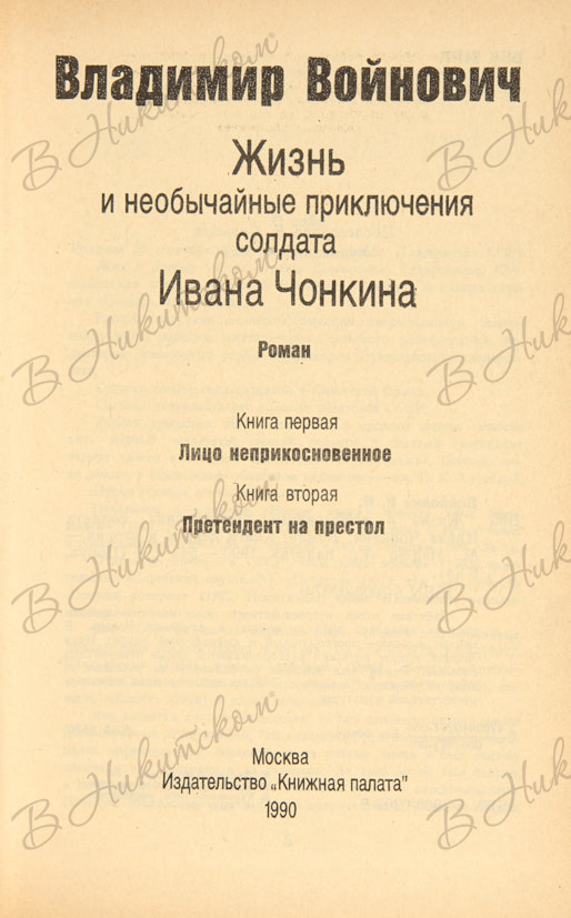 Войнович, В. [Автограф]. Жизнь и необычайные солдата Ивана Чонкина. М.: Издательство «Книжная палата», 1990.