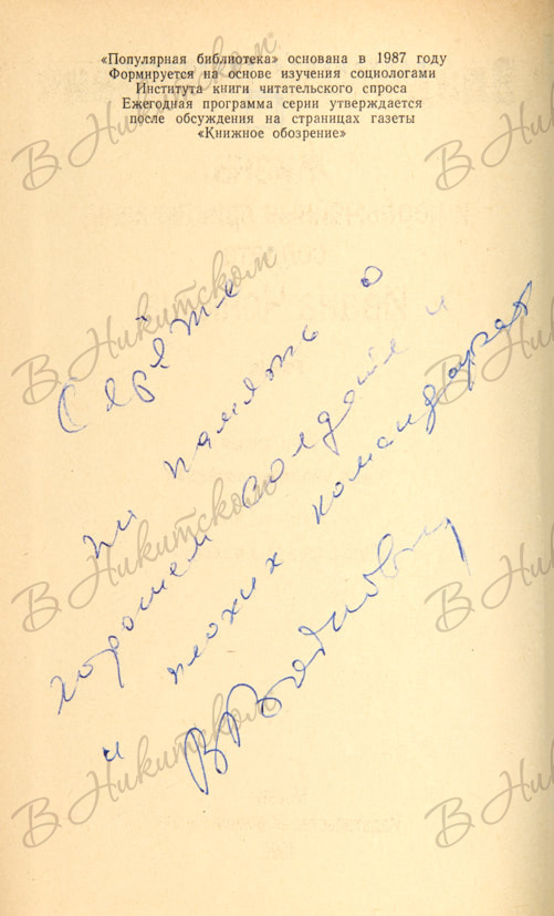 542, [2] с. 20,5 х 13 см. В ледериновом издательском иллюстрированном переплете. В отличном состоянии. На обороте форзаца 2а автограф автора: «Серёже / на память о / хорошем и / и плохих командирах / В Войнович».