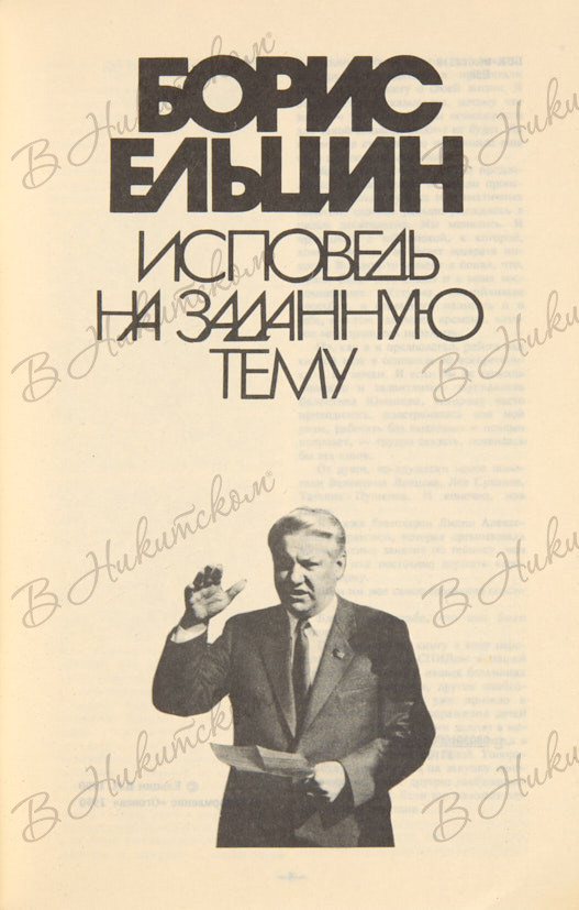 Ельцин, Б. [Автограф]. Исповедь на заданную тему. М.: Советско-британская творческая ассоциация «Огонек»-«Вариант», 1990.