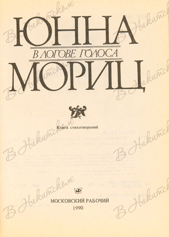 Мориц, Ю. [Автограф]. В логове голоса. М.: «Московский рабочий», 1990.
