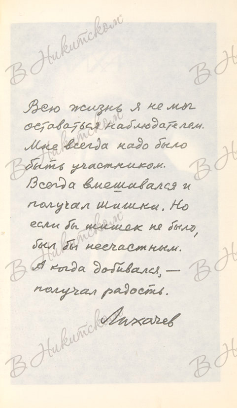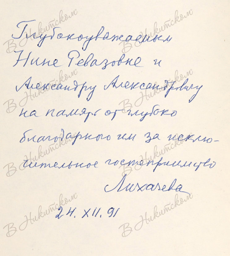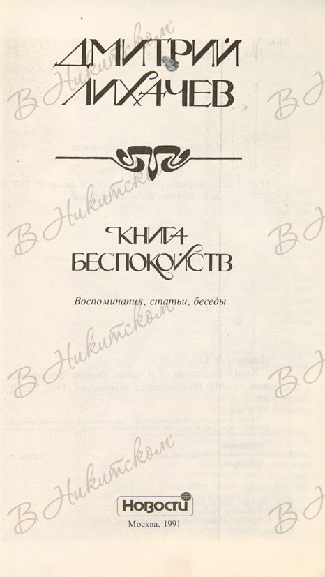 Лихачев, Д. [Автограф]. Книга беспокойств. М.: Новости, 1991.
