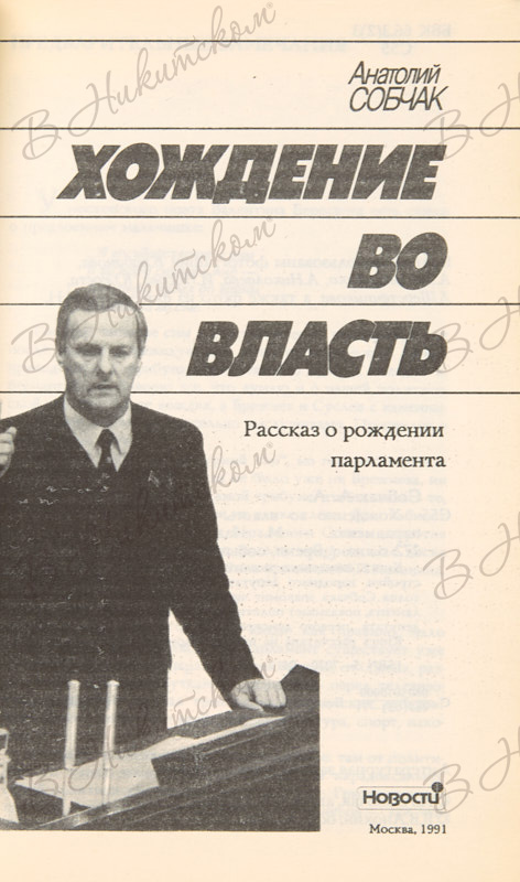 Собчак, А. [Автограф]. Хождение во власть. Рассказ о рождении парламента. М.: «Новости», 1991.