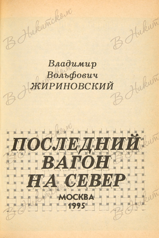 Жириновский, В.В. [Автограф]. Последний вагон на север. М., 1995.