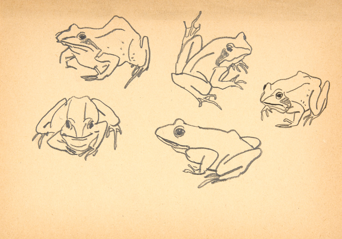 Лот из двух рисунков. Лягушки. 1970-е гг. Бумага, карандаш, 21×30 см.