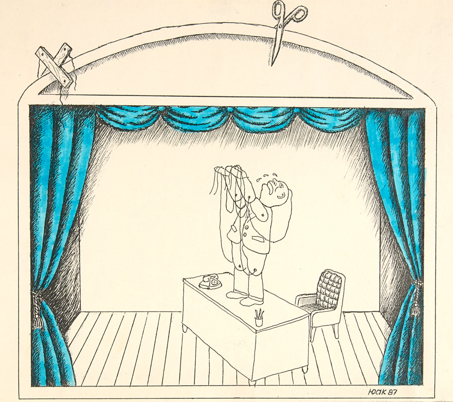 Лот из 2 рисунков. На сцене. 1986-1987. Бумага, тушь, акварель, 16×18,5, 21×28 см.