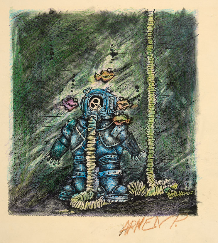 2. Водолаз. 1980-е гг. Автолитография, 30×31,2 см. Справа внизу авторская подпись: Armen P.