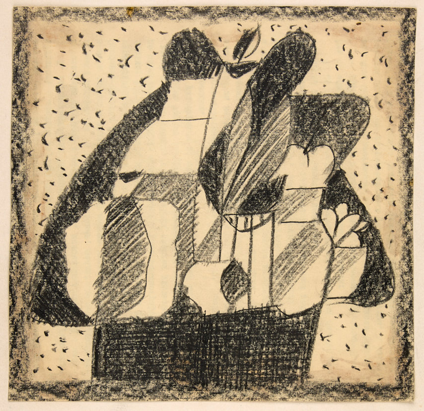Корзина с цветами. Натюрморт 1980-е гг. Бумага, цанговый карандаш, 20×20,5 см.
