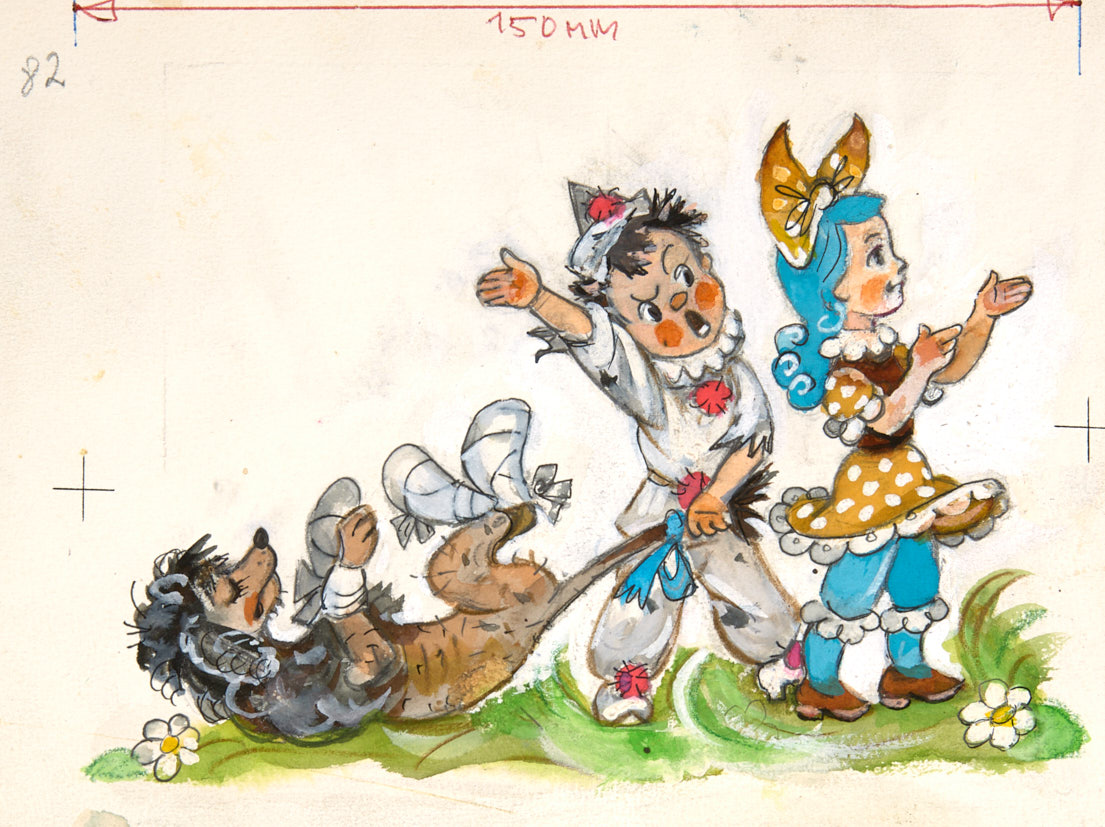 Раненый Артемон. Оригинал для книги «Золотой ключик». 1971 г. Бумага, гуашь, 17×21 см.