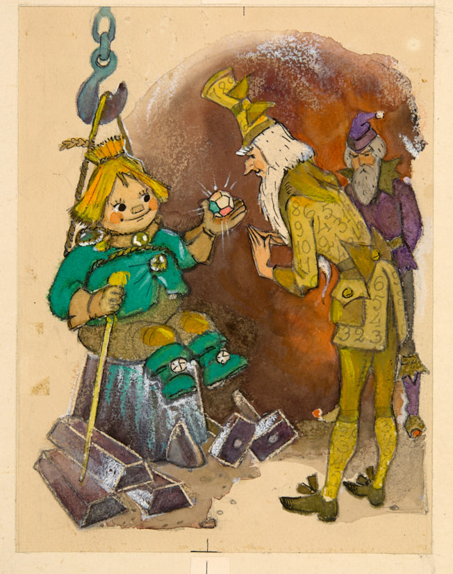 Страшила с драгоценным камнем. Оригинал для книги «Семь подземных королей» А.М. Волкова. 1970-е гг. Бумага, гуашь, 17×13 см.