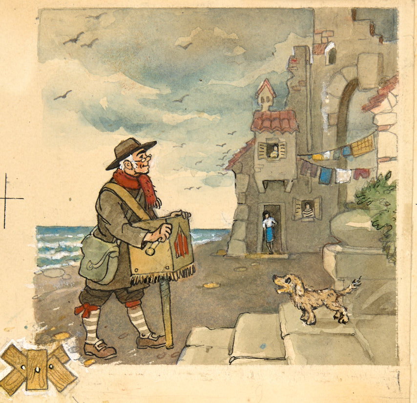 Папа Карло с шарманкой. 1971 г. Бумага, гуашь, тушь, 1,5×13 см.