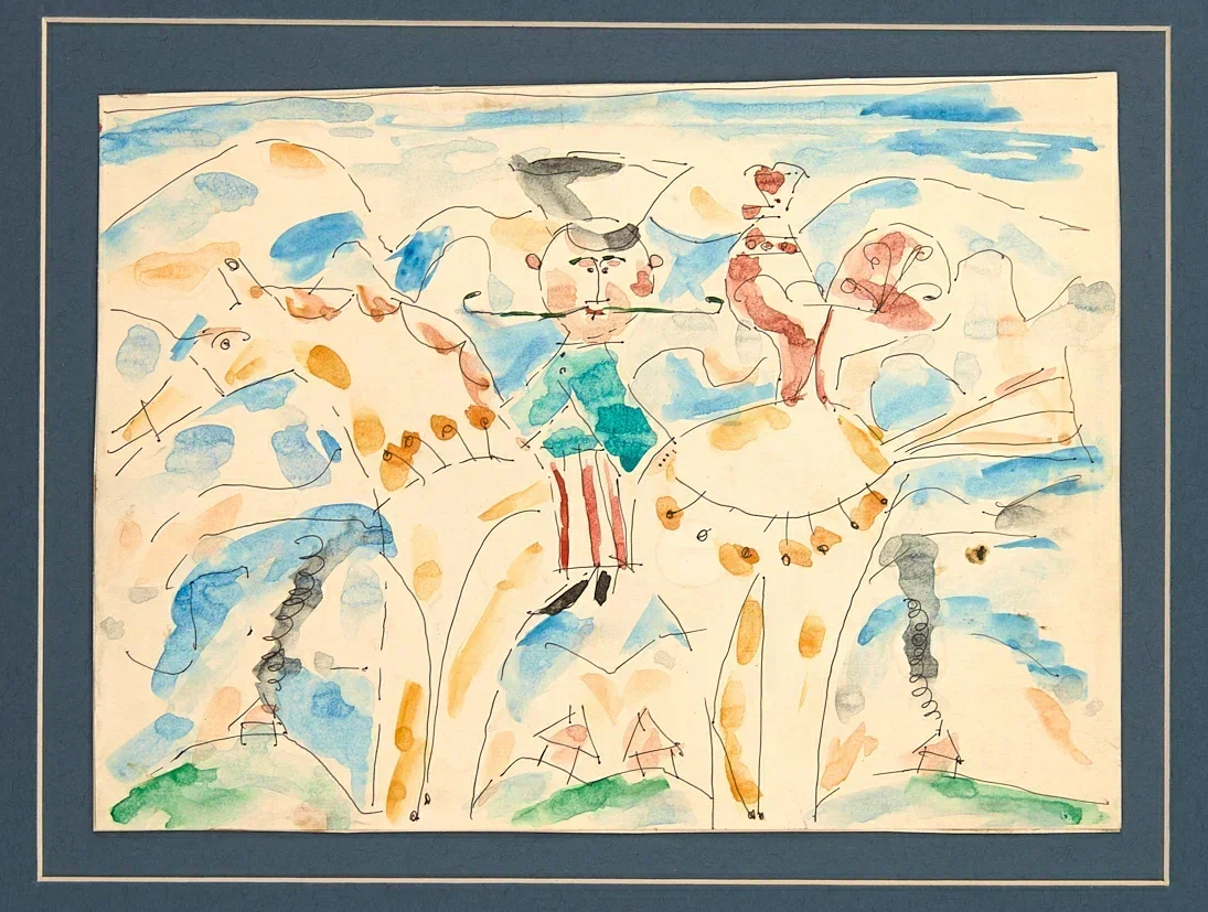В кукольном театре. 1971 г. Бумага, гуашь, тушь, 9×9 см.