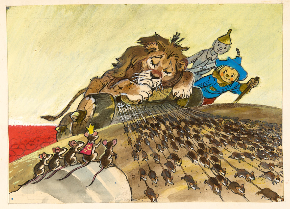 Через маковое поле. Оригинал иллюстрации для волшебной повести «Волшебник Изумрудного города» А. М. Волкова. 1971 г. Бумага, акварель, гуашь, тушь, 17,2*15,8 см.
