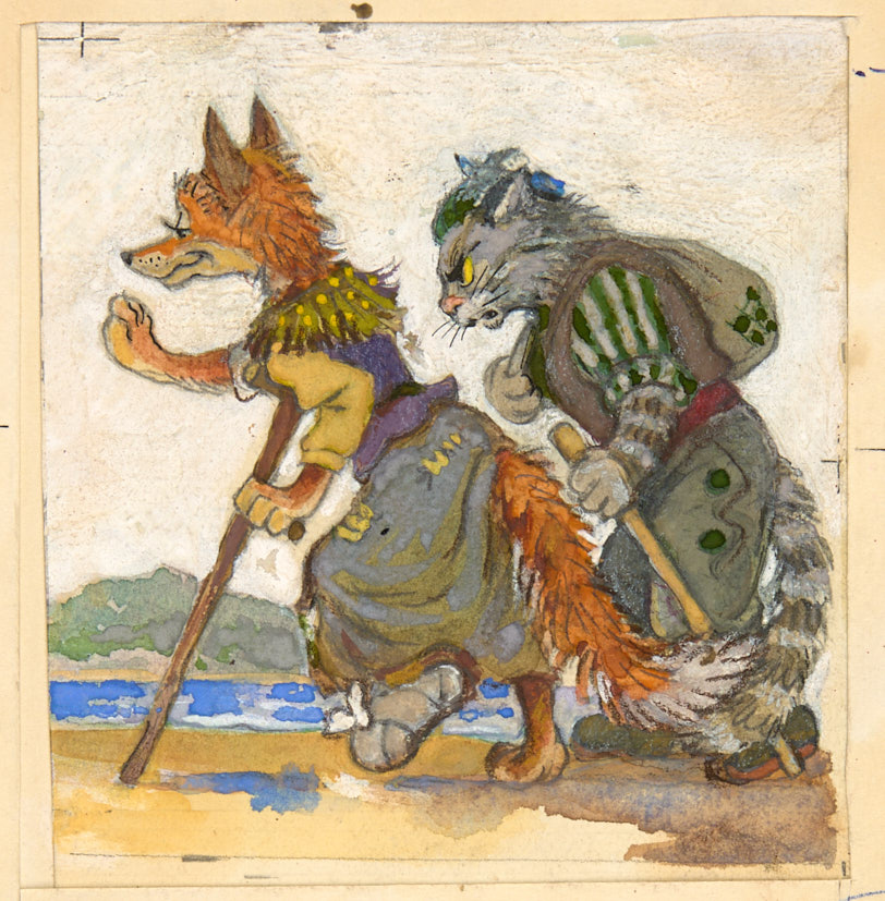 Лиса Алиса и кот Базилио. 1971 г. Бумага, гуашь, тушь, 9*9 см.