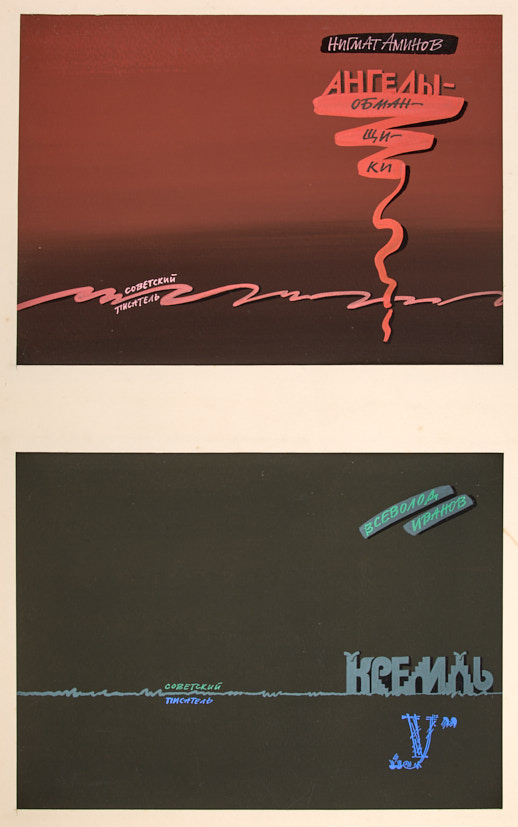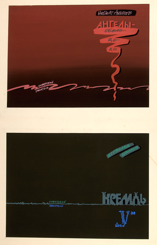 Лот из двух оригиналов обложек для издательства «Советский писатель». 1. Нигмат Аминов «Ангелы и обманщики».