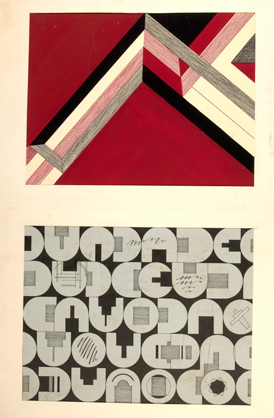 Лот из двух беспредметных композиций. 1980-е гг. Бумага, тушь, перо, гуашь, 20×26 см, 19,5×26 см.