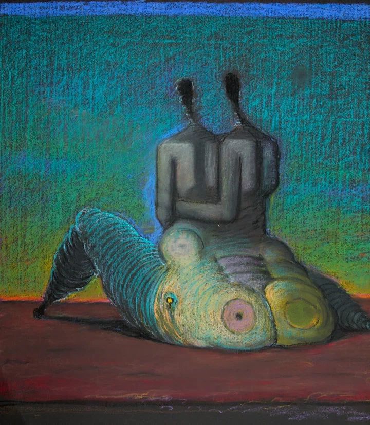 Ты тоже слышишь шум дождя? 1990-е гг. Тонированная бумага, масляная пастель, 55×50 см.