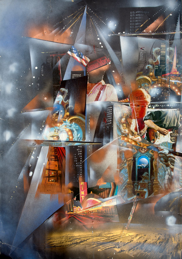 Эскиз оформления оперы Д. Гершвина «Порги и Бесс». 1990-е гг. Бумага, аэрограф, коллаж, белила, 100×70 см.
