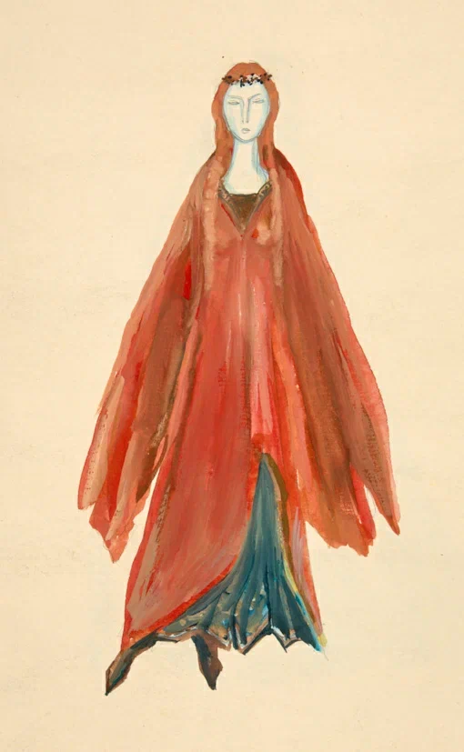 3. Эскиз костюма Офелии. Карандаш, гуашь, 42×29,5 см.