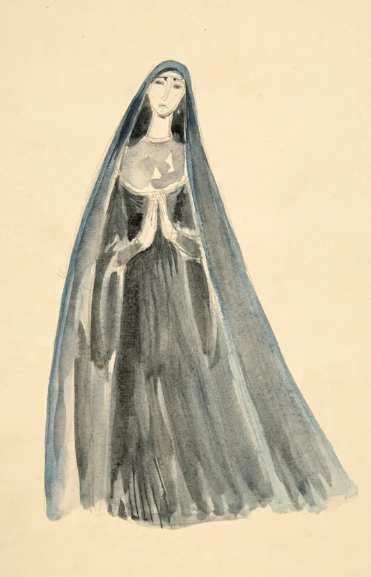 2. Эскиз к костюму монахини. Акварельная бумага, карандаш, акварель, 42×29,5 см.
