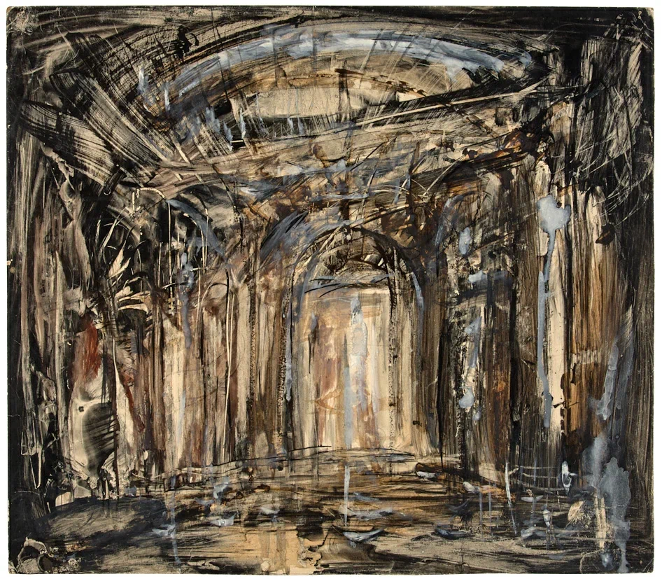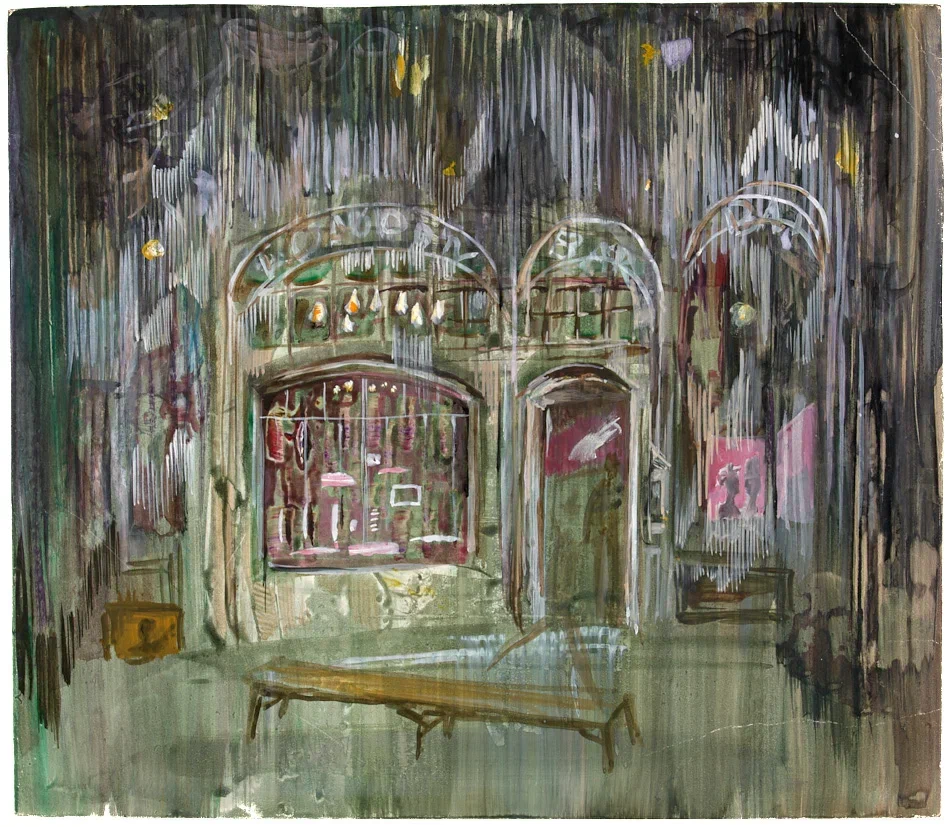 Лот из 4 эскизов декораций. Лондон. Кафе. Бар. 1990-е гг. Картон, гуашь, белила, 31,2×36 см.