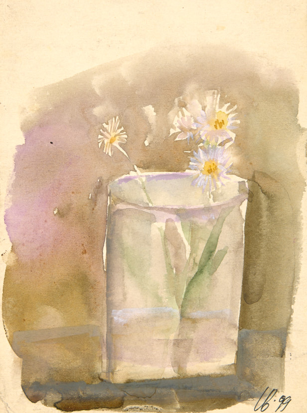 Сынков Виктор. Ромашки в стакане. 1999 г. Ватман, акварель, 15,7×11 см.