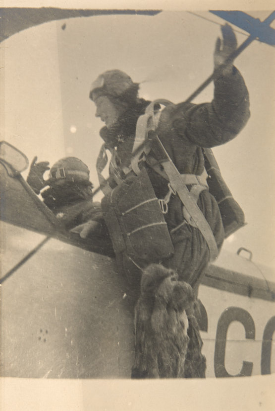 Полярный летчик Игорь Дакстергоф. Крыло самолета. 1935 г. Фотография, 24×15 см.