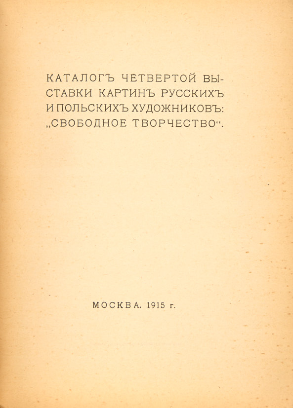 Каталог четвертой выставки картин русских и польских художников: «Свободное творчество». М.: 1915. 25 с.