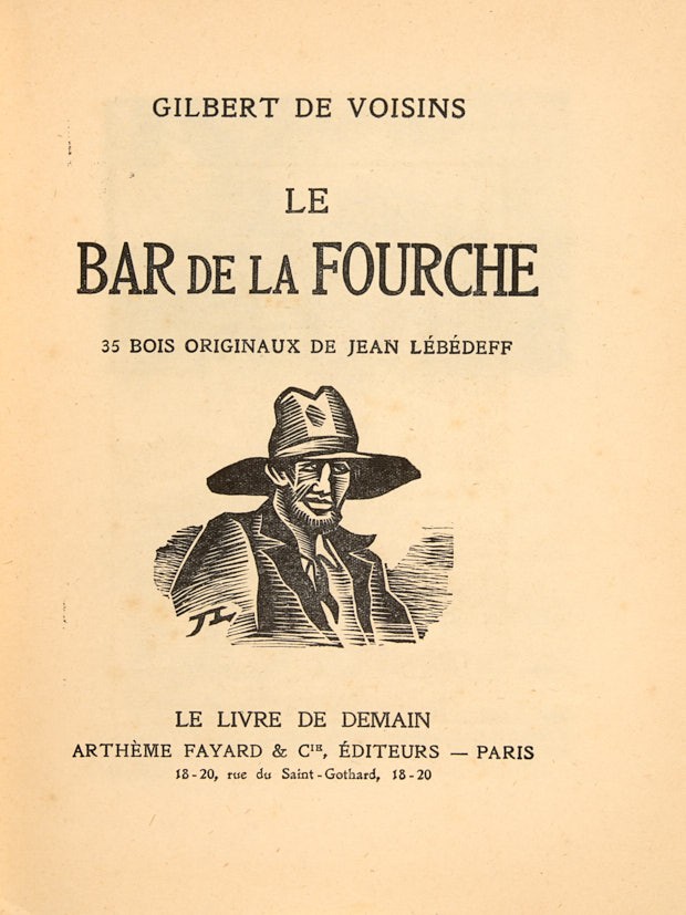 [Книга художника] Жильбер Вуазан / Gilber de Voisins. Вилка / Le bar de la fourche. Линогравюры Жанна Лебедева. Париж: Arteheme Fayrd & C, 1932. 124 с., ил.