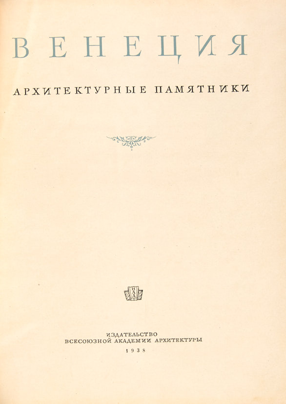 Венеция. Архитектурные памятники / Подготовка текста и подбор иллюстраций А. И. Венедиктова. [Л.]: Изд. Всесоюзн. академии архитектуры, 1938. 116 с.: ил.