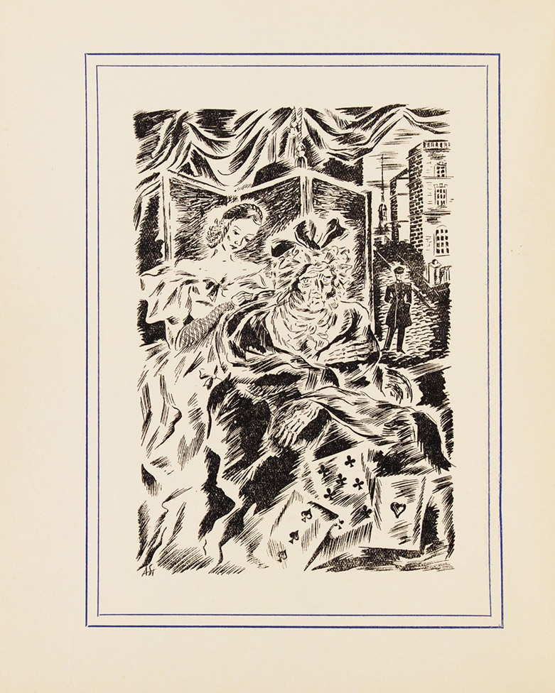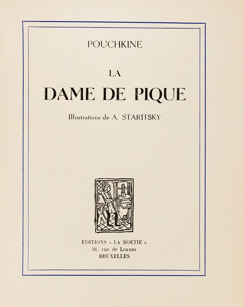Пиковая дама / худ. А. Старицкая. [Pouchkine A. La dame de pique]. Брюссель: Editions La Boetie, 1947. 3-59, [5] с., ил.