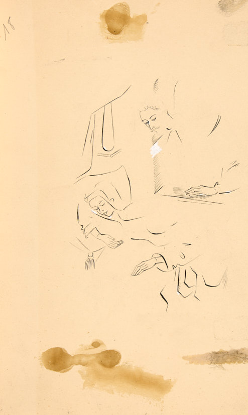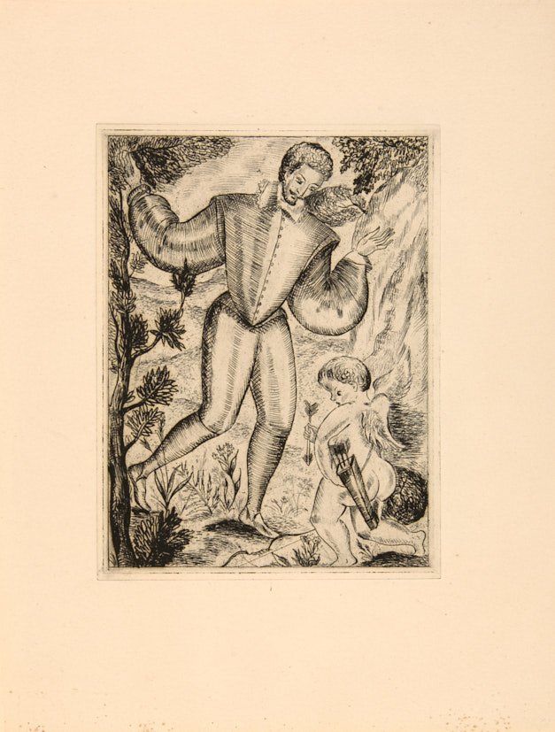 4 л. офортов. Тройная сюита (12 л.). Экземпляр №3 на веленевой бумаге из тиража в 320 экземмпляров. В издательской шрифтовой обложке, издательской картонажной папке и в издательском картонажном футляре. К экземпляру приложено два оригинальных рисунка и двойная сюита пробных отпечатков цветных цинкографий с цветовыми пробами. Листы не сброшюрованы.