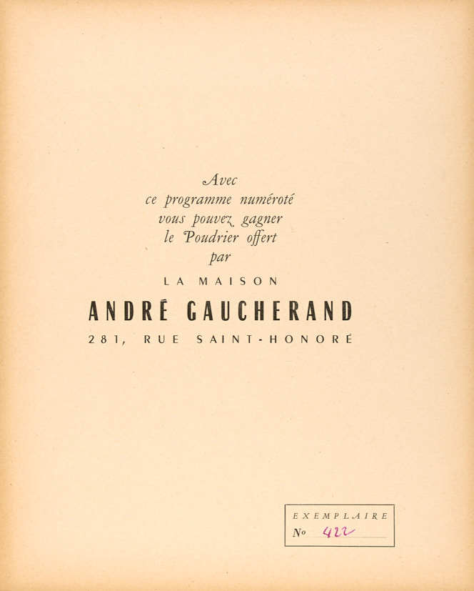 Время Русского Балета. 19 июня 1952 года в театре-казино в Ангьен-ле-Бен. [Брошюра-программа]. [Au Temps des Ballets Russes. Le dix-neuf Juin 1952 Au Theatre du casino d’Enghien-les-bains. На фр. яз.] Париж, 1952. [32] с., ил.