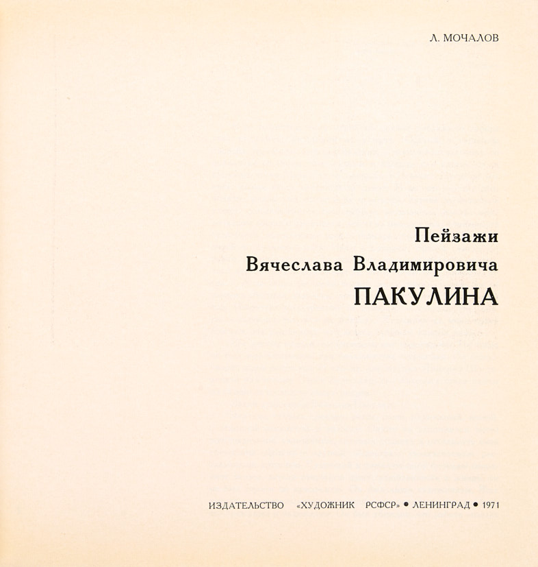Пейзажи Вячеслава Владимировича Пакулина. — Л.: Художник РСФСР, 1971. 79 с.: ил.