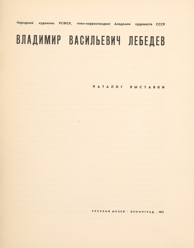 Владимир Васильевич Лебедев: каталог выставки. Л.: Русский музей, 1972. Фронт., 56 с., 22 л. ил.