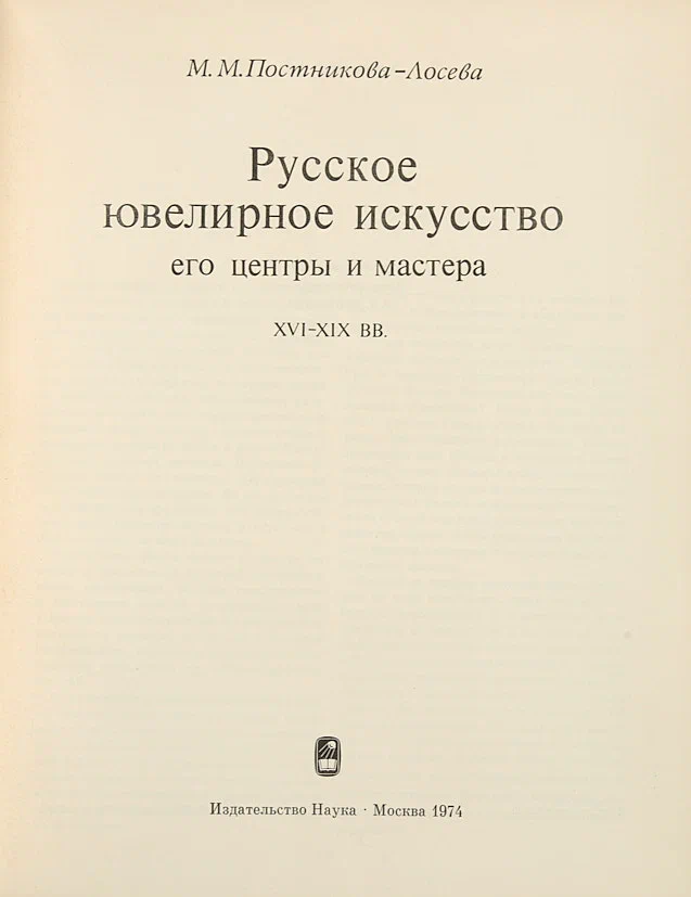 Русское ювелирное искусство, его центры и мастера XVI-XIX вв. М.: Наука, 1974. 371, [5] с.: ил.