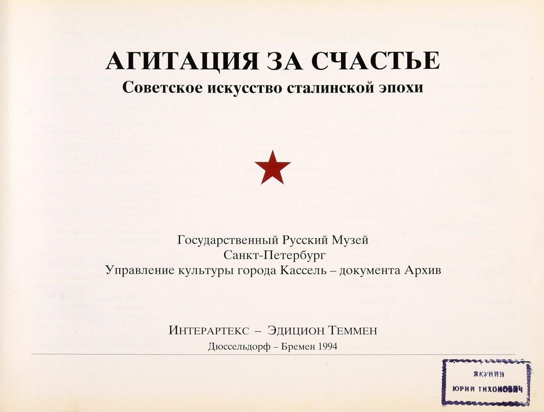Агитация за счастье: советское искусство сталинской эпохи. Каталог выставки. Дюссельдорф; Бремен, 1994. 319 с., ил.