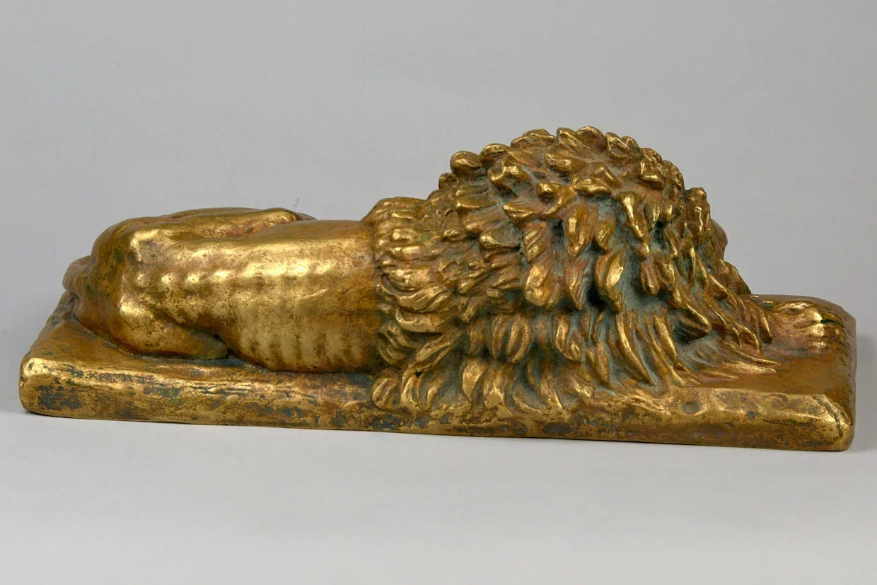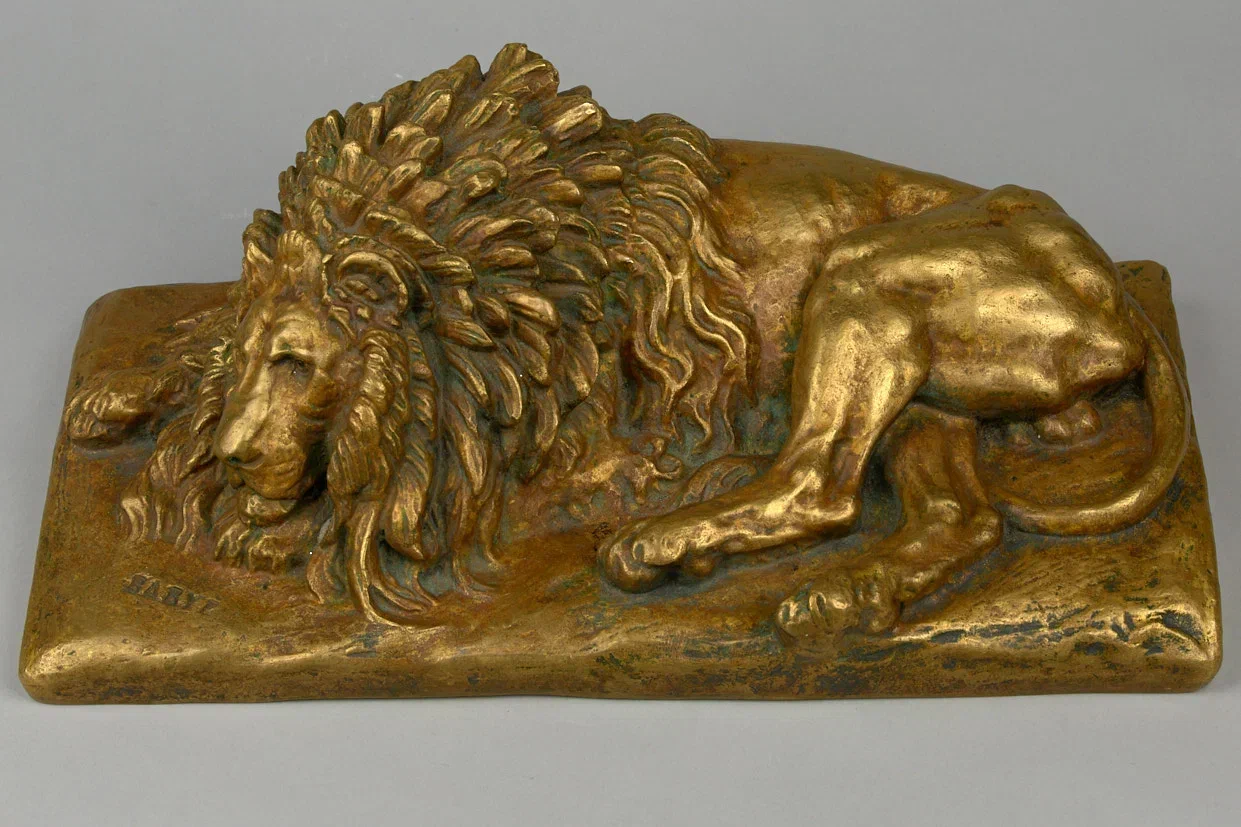 Бари Антуан Луи (1795–1875). Скульптура «Лежащий лев». XIX в. Бронза, литье, чеканка, золочение, 34×18×12 см.