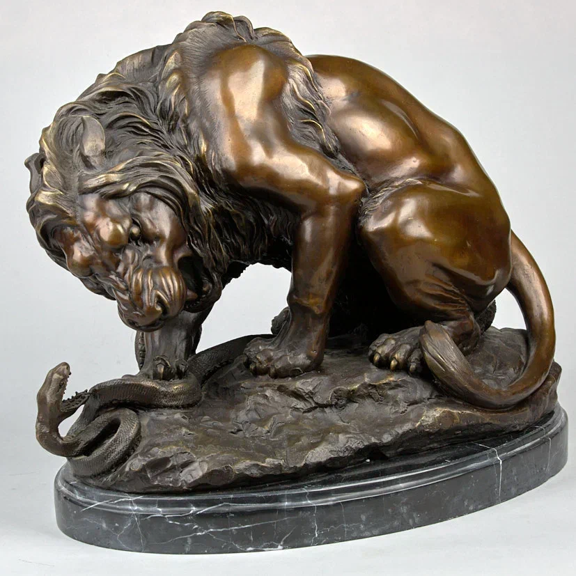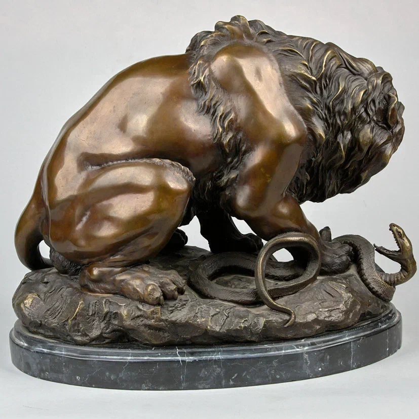 Бари Антуан Луи (1795–1875). Скульптура «Лев и Змея». Реплика неизвестной французской мастерской. XIX в. Бронза, литье, чеканка, 35×25 см.