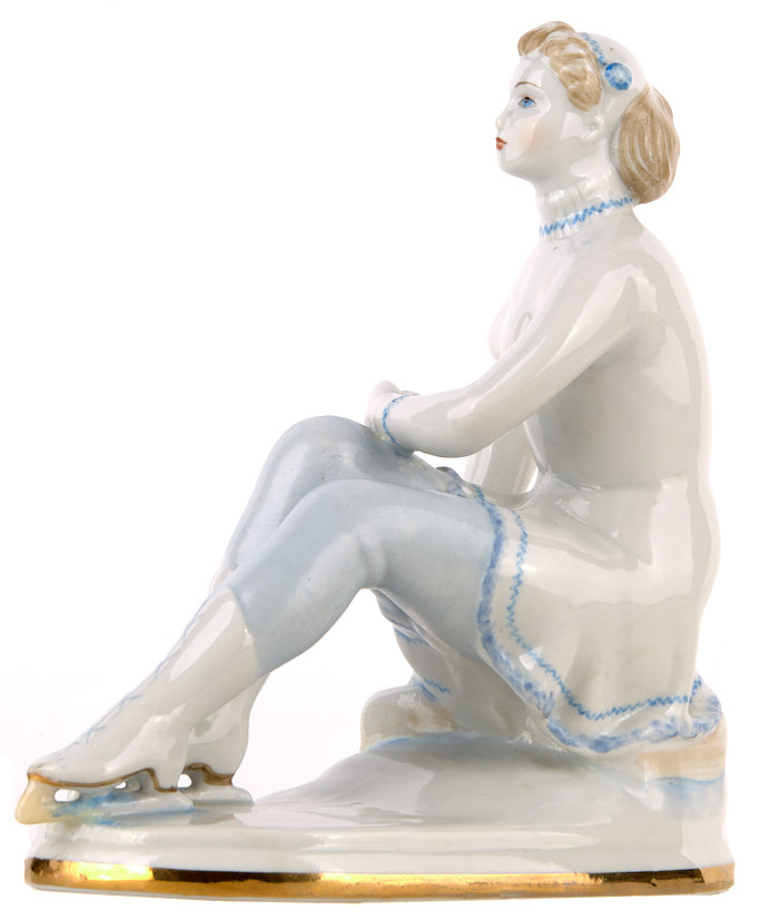 Конькобежка. 1957 г. По модели Ефима Гендельмана, художник Е.Н. Лупанова. ЛФЗ. Фарфор, роспись, золочение, высота: 17 см.