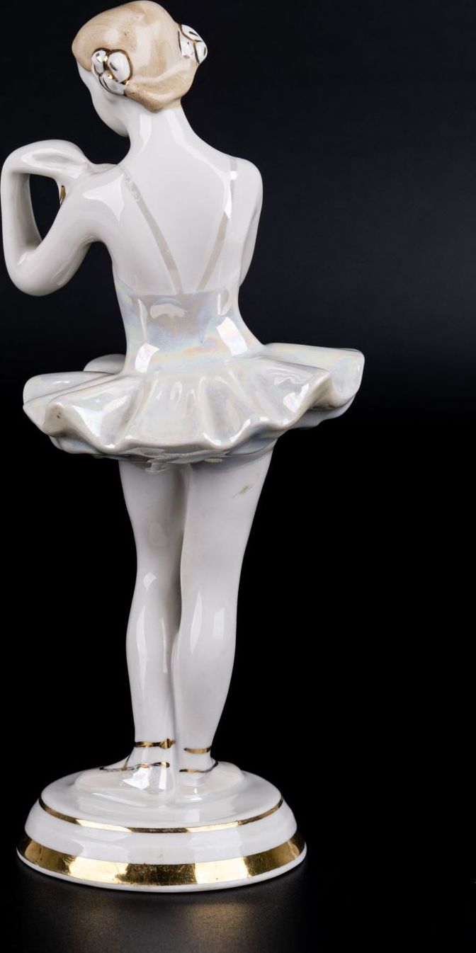 Балерина с цветком. Дмитровский фарфоровый завод в Вербилках, 1950-1960-е гг. Фарфор, роспись, люстр, золочение, высота: 21,4 см.