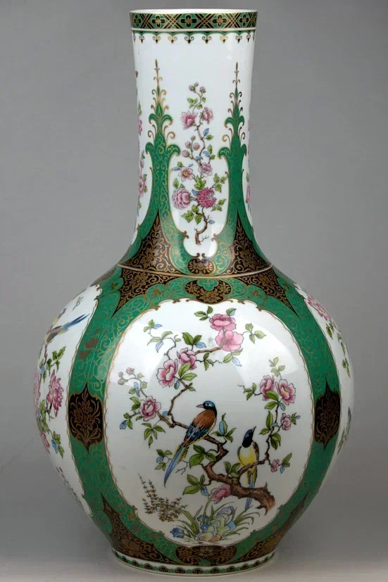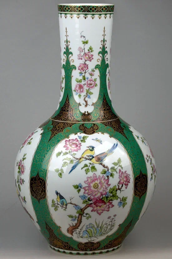 Ваза напольная в китайском стиле. 1960–е гг. Фарфор, роспись, золочение 48×10,5×14,5 см.