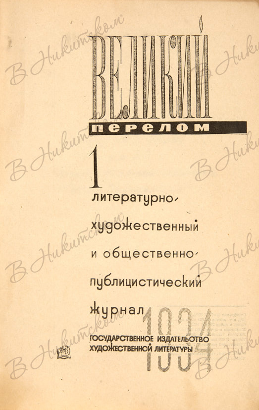 Великий перелом. Литературно-художественный и общественно-публицистический журнал. Вып. № 1 за 1934 г. М.: ГИХЛ, 1934.