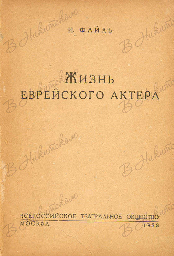 [Автограф С. Михоэлса]. Файль, И. Жизнь еврейского актёра. М.: Всероссийское Театральное Общество, 1938.