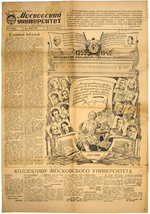 [МГУ - 185 лет. Юбилейный номер газеты]. Московский университет. 8 мая 1940.