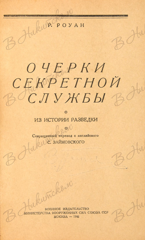 [«Король пользуется абсолютной властью до тех пор, пока он выполняет нашу волю»]. Роуан, Р. Очерки секретной службы: из истории разведки / пер. с англ. С. Займовского. М.: Военное издательство Министерства Вооруженных сил Союза ССР; 2-я тип. Воениздата МВС Союза ССР имени К. Ворошилова, 1946.