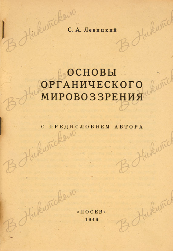 Левицкий, С. Основы органического мировоззрения. Посев, 1946.
