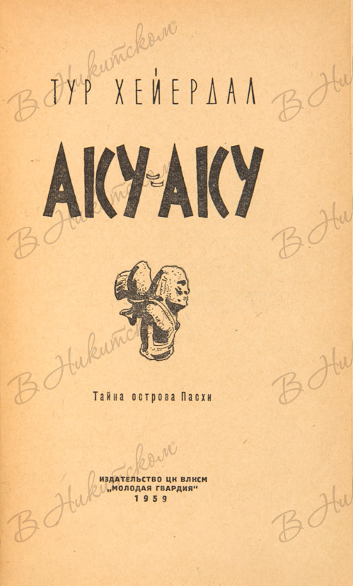 Хейердал, Т. [Автограф]. Аку-Аку. Тайна острова Пасхи. М.: «Молодая гвардия», 1959.